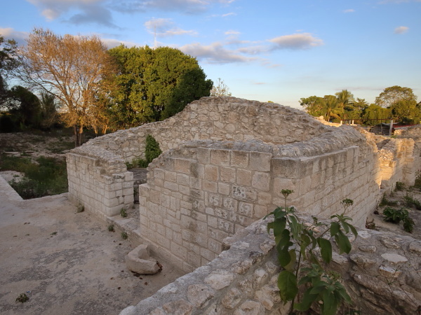 中に入れたのでまず建物 C を正面から。 ベッドが設えてあり、壁には壁龕もあり、屋根部分にはマヤアーチの痕跡もあります。
