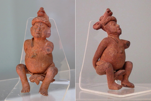 右は初期の祭司像、左は中期以降の王の呼び子ですが、もっと素晴らしいハイナ島の出土品、いわゆる逸品、傑作の類いはメキシコ・シティーや