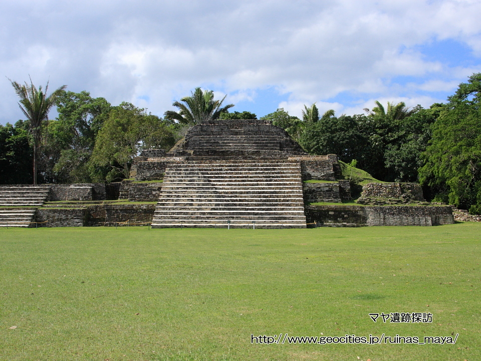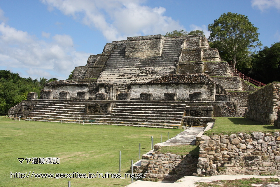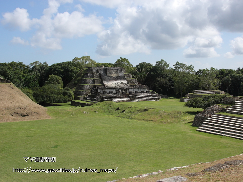 B-2 の前、広場Bの南西角から見た 建造物 B-4、アルトゥン・ハで一番際立つ建物です。 右手前は建造物