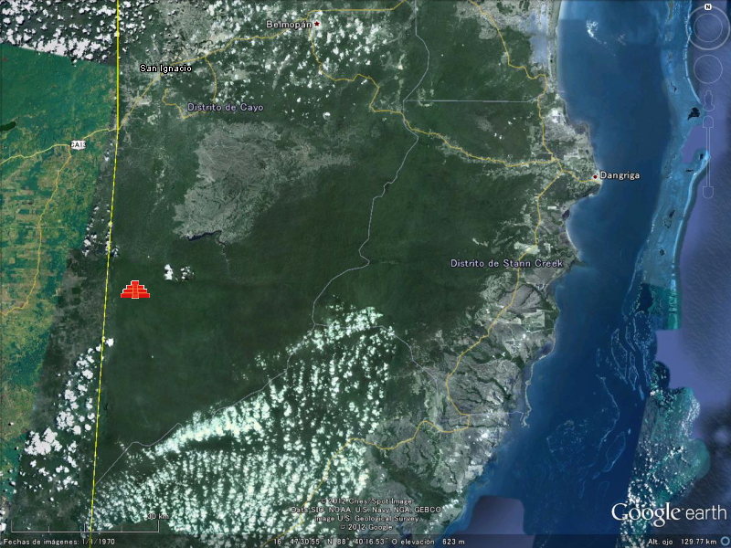 カラコル遺跡はサン・イグナシオから南へ 80Km、海抜 500m のマヤ高地の一角にあります。