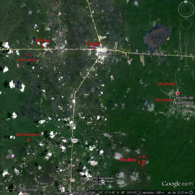 ベカンはチェトゥマルとエスカルセガを結ぶ国道186号沿いで、シュプイルから西へ 7Km、チカナから東へ 3Km とアクセスが非常に良く、