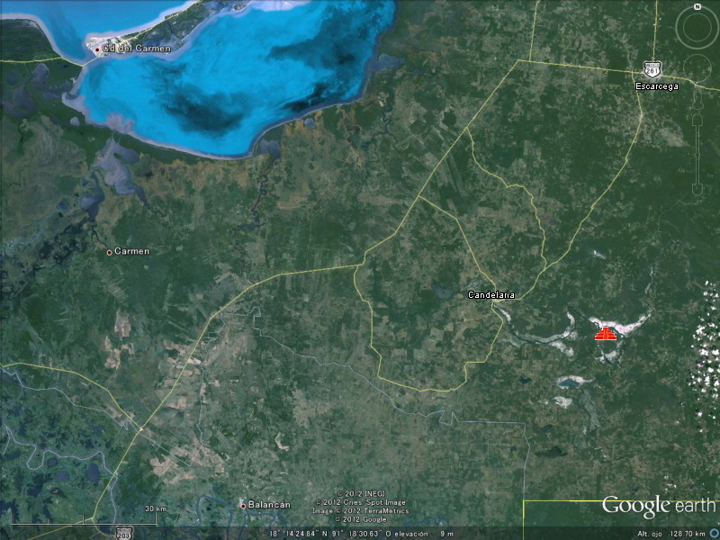 エル・ティグレはカンペチェ州ですが、グアテマラ国境及びタバスコ州との州境に近く、最南部です。 カンデラリア川流域で、ペテン地域