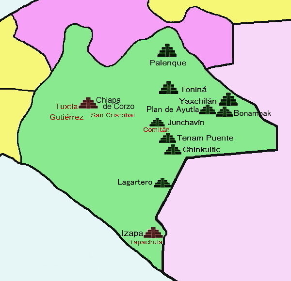 チアパスはメキシコ南東部の風光明媚な州で、チアパス高地、シエラ・マドレ山系の高山地帯から熱帯雨林のジャングル、南は太平洋岸と、 自然の変化に富みます。 先住民の人口比率が高く、マヤの影響を一番色濃く残している州で、世界遺産のパレンケ始め 古典期に栄えた 重要なマヤ遺跡が数多く残されます。 2016年にはサク・ツィ王国の候補と言われるプラン・デ・アユトゥラ遺跡まで足を伸ばしました。