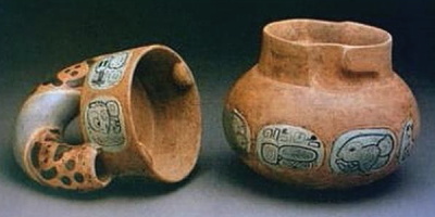 墳墓 19 に納められていた副葬品で、中に残された残滓からカカオ飲料を入れる為の容器だったと考えられ、漆喰で王の名前とカカオの文字が