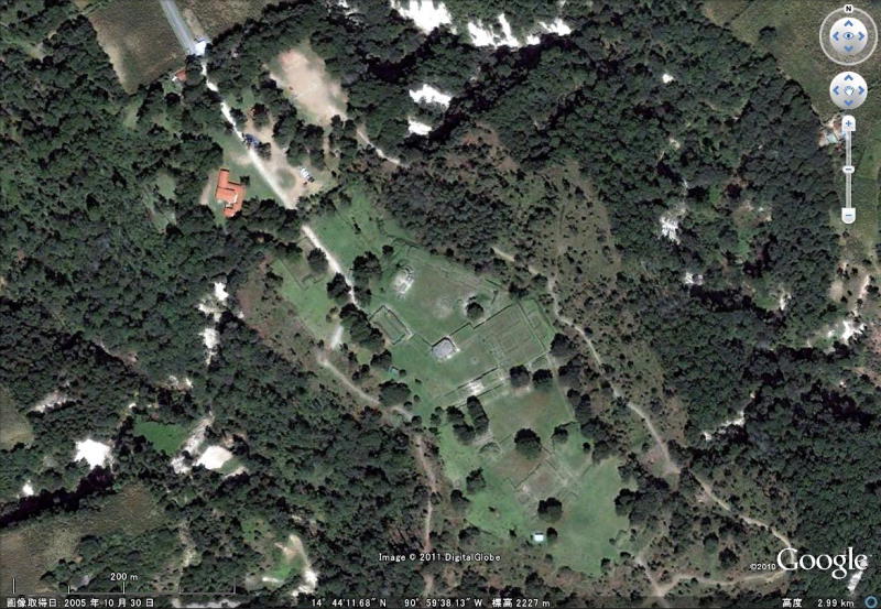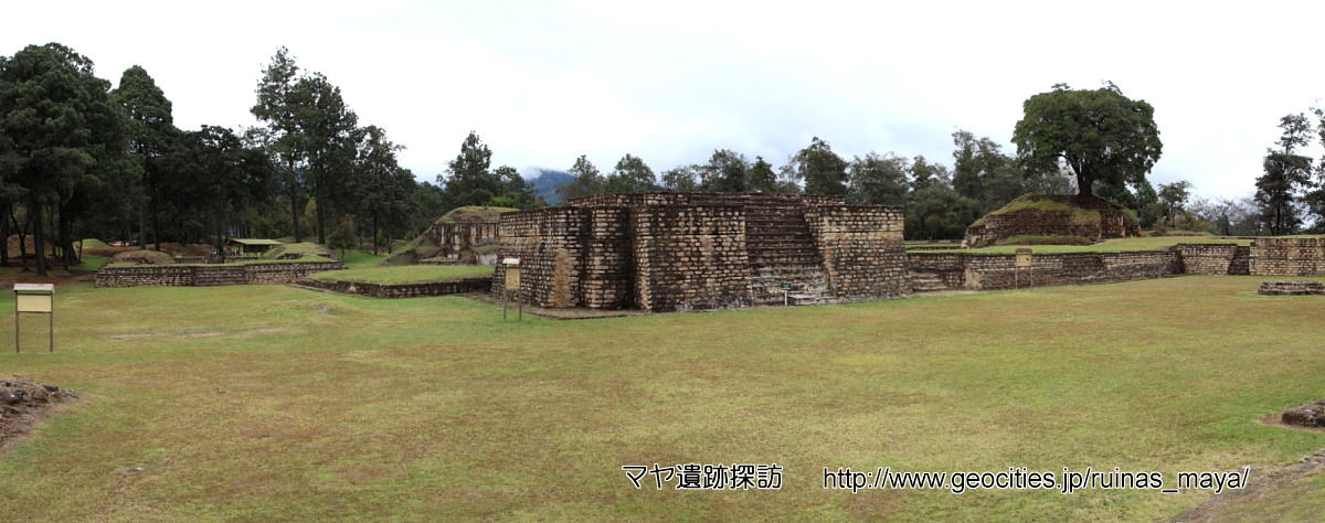 東西に二つのピラミッド神殿、南西側に大きな球戯場があります。 建物に囲まれた広場は 100 x 75m の広さがあるそうです。