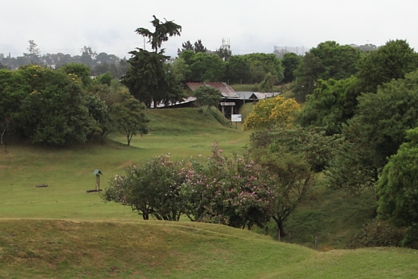遺跡に戻り、南東のラ・パランガーナへ。 芝で整備された公園には所々木々で覆われた土塁が残されており、これは未発掘の