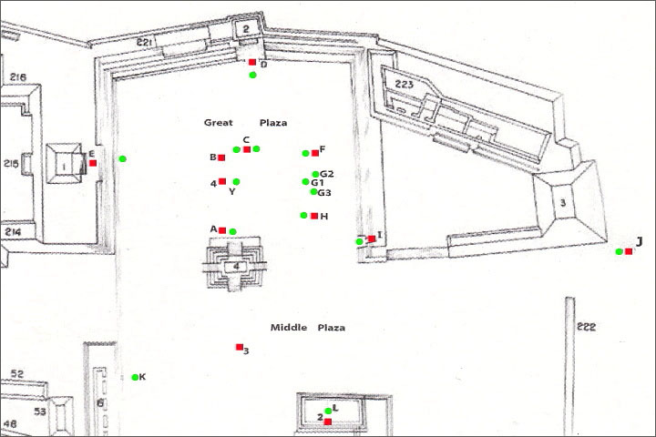 殆どの石碑がグラン・プラサにそのまま残されますが、即位後最初の石碑になる石碑 J は、中心部の東側でラス・セプルトゥーラスに抜ける場所に建てられます。