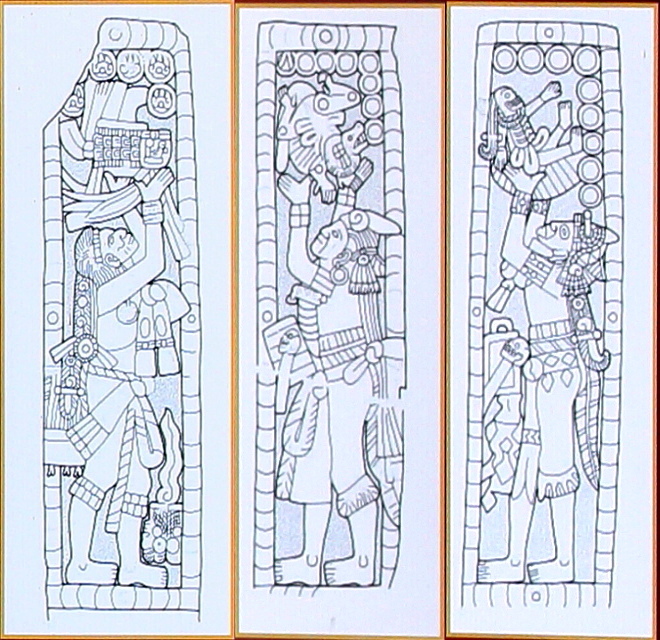 3本の石碑は 9.2.0.0.0 (475AD)のカトゥンに建立され、400年に遡る王の誕生、即位等の史実が刻まれ、