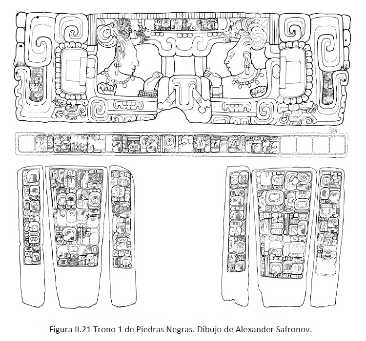 図像からはテオティウアカン風の装束、武具が認められて、同じくテオティウアカンの影響を受けたティカルとタカリク・アバフを繋ぐ