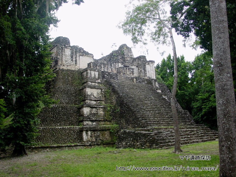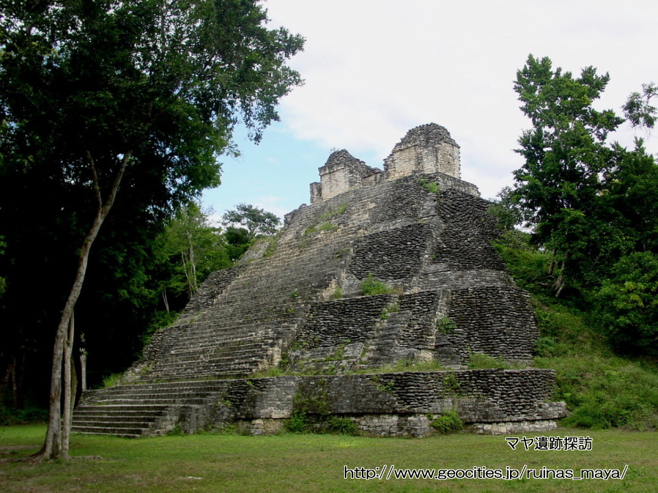 州の最南部にあって、ペテン様式やリオベック様式の影響を受け、絶対王権の象徴とも言える 緑のモザイク仮面も 5つ 見つかっており、古典期マヤ世界の中でも重要な位置を占める遺跡です。