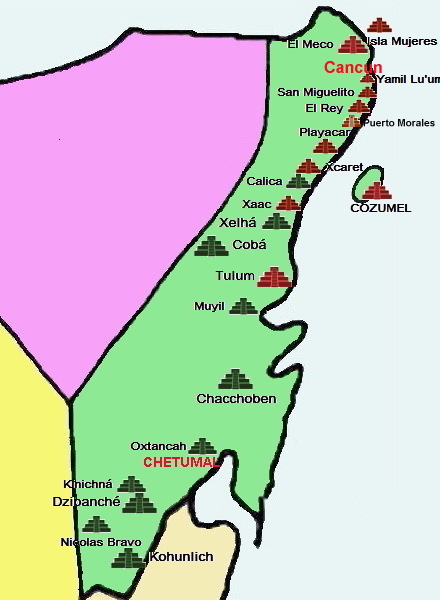 キンタナ ローはユカタン半島の東側で 1000Kmに及ぶ海岸線を有する南北に細長い州です。 世界的に知られたリゾート地 カンクンやリビエラ マヤは北部の海岸沿いですが、州都チェトゥマルはベリーゼに近く州の南になります。