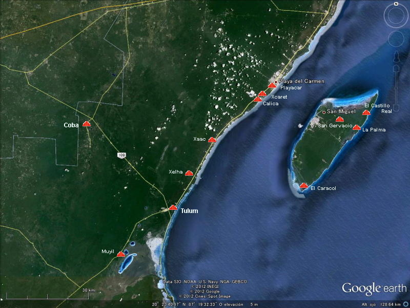 海岸に近い遺跡ゾーンはグーグル・アースでチェックしてありましたが、途中シャマンハ通りとコバ通りの東南角に小さなマヤの