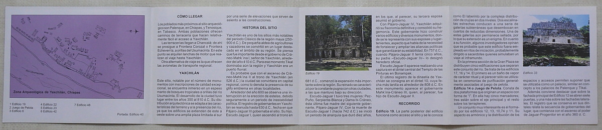 INAH (国立歴史・考古学局)によるもので、遺跡の入口で入場料を払う時に買える場合もありますが、置いていない所の方が多いようです。