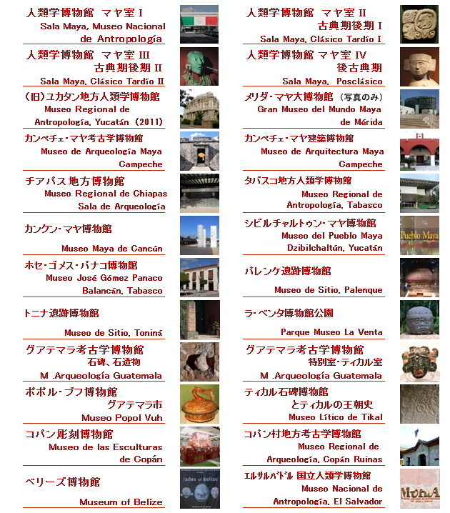 メキシコ、グアテマラ、ベリーズ、ホンジュラス、エルサルバドルにあるマヤの博物館です。