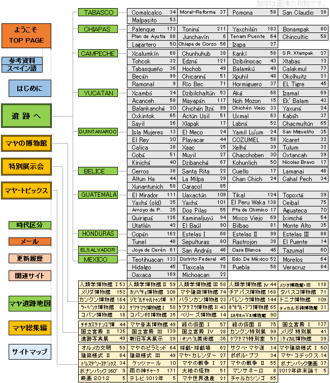 写真でマヤ遺跡を紹介するマヤ遺跡探訪、 画像が 10,000枚以上あります。