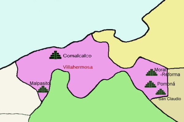 タバスコ州は北はカリブ海に面し、南はチアパス州と境を接し、低地で熱帯雨林気候の地域です。 州西部は オルメカ文明 発祥の地として知られ、 コマルカルコはマヤ文明の最西端になります。 2011年11月 にポモナ、モラル・レフォルマ、サン・クラウディオとマルパシートを訪問し、 紹介できる遺跡が5か所になりました。
