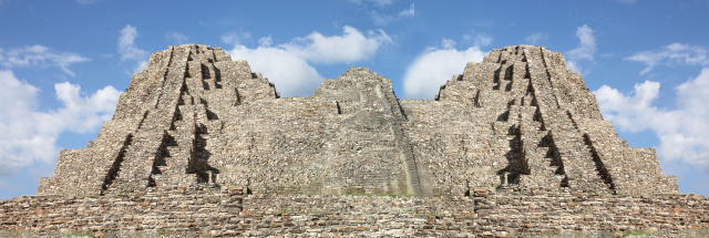 建造が始まり、その後2回にわたり増改築が加えられ、現在の姿は古典期終末期のもので、基壇の隅はまるくなっておりペテン様式を