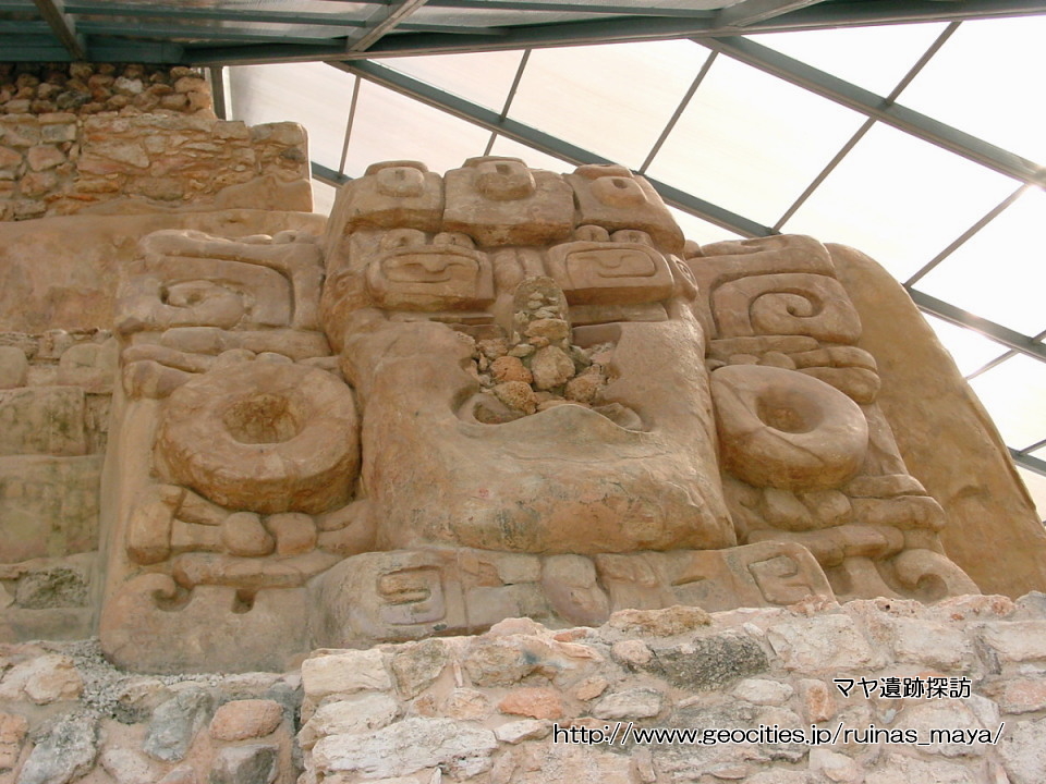 仮面のピラミッドは古典期前期にペテン様式で建てられますが、古典期後期になって新しい建物で覆われて巨大仮面は姿を消します。