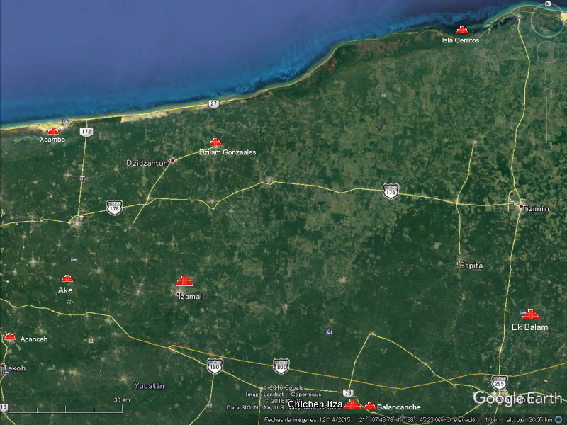 チチェン・イッツァの海洋交易拠点だったと言われるセリートス島。 エク・バラム遺跡から北へ 約 90Km のユカタン半島北端の保養地 リオ・ラガルトスが