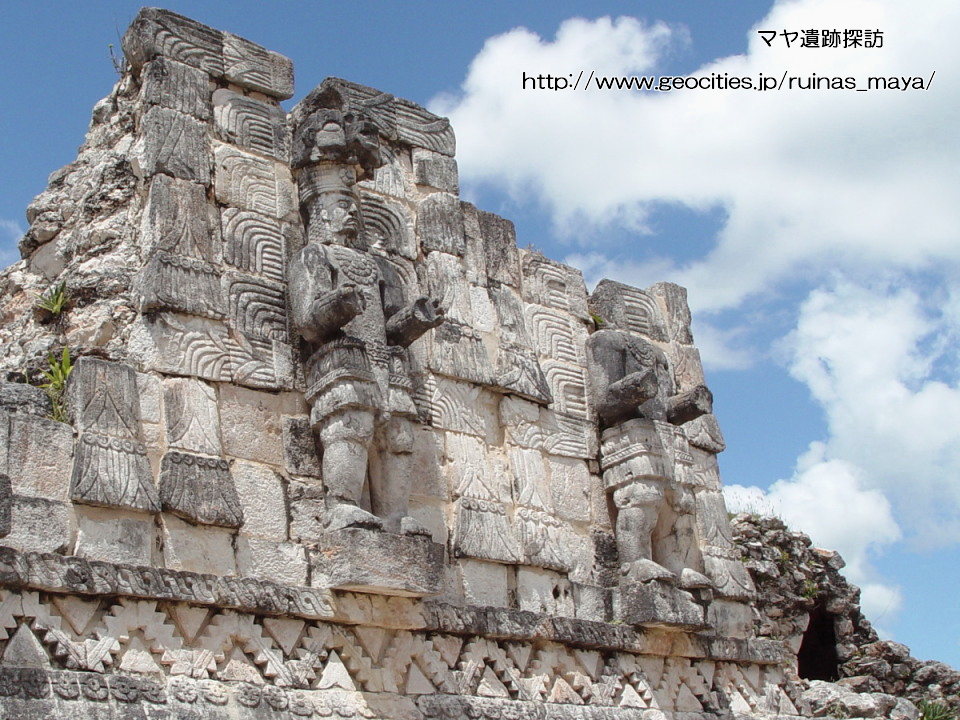 基壇を西側から登ってみると、正面の壁面装飾が目に飛び込んできます。 プーク様式では