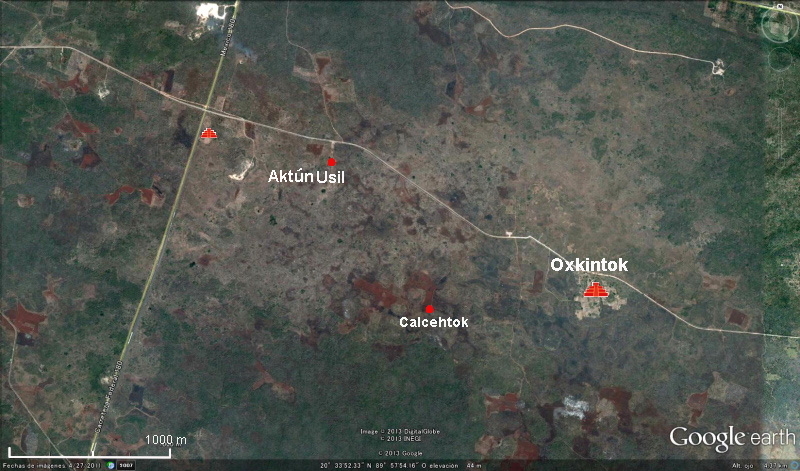 正確な場所は冒頭の地図にあるように、ウシル洞窟から国道 180号をカンペチェ方向へ南に入った所で、道路の東側になります。 オシュキントック訪問